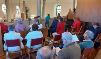 Der Kirchenchor lauscht zur Messe den Worten von Pfarrer Rossbach, Fotoarchiv Kai Schraub.