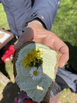 Zum Abschluss hat uns Frau Beuthner ein leckeres Brot, mit Quark aus Wildkräutern zubereitet.