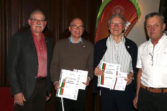 Die beiden Jubilare Ralf Fedler und Lorenz Mielke, eingerahmt vom Vereinsvorsitzenden Bernd Luckas und seinem Vorgänger Max Sammet