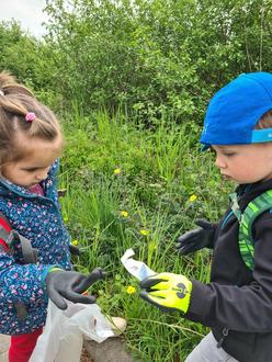 Besonders geschockt waren die Kinder, als sie gemerkt haben, wieviel Müll sich in den Büschen am Wegesrand sammelt. Am Ende des Vormittages kamen einige Tüten zusammen und alle Kinder haben sich gefreut, dass sie etwas für eine saubere Umwelt tun können.
