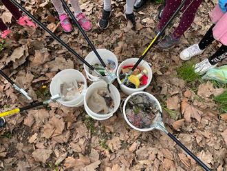 Die „Sterntaler“ ausgestattet mit Greifzangen und Einweghandschuhen bei dem Müll einsammeln