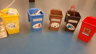 Mit den „kleinen“ Tonnen lernten die Kinder, wo gehört welcher Müll hinein