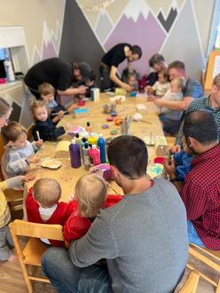 Es wurde gemalt, geklebt und natürlich ganz viel gelacht. Besonders schön: Viele Papis waren mit dabei und haben fleißig mitgeholfen!