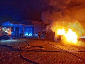 Vor Ort eingetroffen stellten die Einsatzkräfte fest, dass sich der Brand nicht im direkten Tankstellenbereich befand sondern im Bereich des angrenzenden Autohauses. Zwei PKW waren bereits in Vollbrand und das Feuer drohte auf das Gebäude überzugreifen.