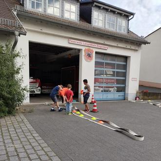 In verschiedenen Teams bauten die Kinder eigene Minigolfbahnen aus Feuerwehrequipment, dabei waren Fantasy und Ideen keine Grenzen gesetzt.