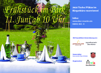 Am Sonntag, 11. Juni, kann Ober-Mörlen zwischen 10 und 14 Uhr wieder in seinem schönen Schlosspark frühstücken. Tische und Bänke werden schon stehen, wenn sich Familien, Freunde, Nachbarn, Kollegen oder einzelne Gäste mit ihren Picknickkörben im Park einfinden und jeder sein eigenes Tischlein-Deck-Dich zaubert. Damit jeder weiß, wo er seinen Platz findet, um den Vormittag gemeinsam zu genießen, sind Einzelplätze oder ganze Tische vorab zu reservieren. Die Reservierungskarten gibt es im Bürgerbüro (Schloss) zu dessen Öffnungszeiten.