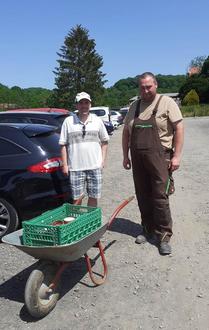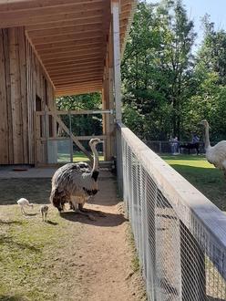 Da man sich über die Jahre zahlreiche Futternäpfe, Behältnisse oder Trinkgefäße für die Vogelschauen angeschafft oder geschenkt bekommen hatte, waren diese letztendlich noch im Vereinslager übrig nach dessen fast vollständiger Räumung in 2022/23. Da nun sich nunmehr alle Vereinsangehörigen mit Material aus diesen Beständen reichlich eingedeckt hatten, blieb immer noch eine große Anzahl davon zurück. Bereits das dritte Mal beim Besuch des Tier- und Vogelparks in Schotten, hat Kai Schraub am Pfinstwochenende die letzte Fuhre, diesmal eine Kiste voll Futternäpfe für den Park mitgenommen. Die Verantwortlichen bedankten sich bei jeder Lieferung auf das Herzlichste, denn im Tierpark geht immer mal etwas kaputt bzw. es werden immer auch für neue Tiere Futter- und Wasserbehältnisse benötigt, denn der Park wächst stetig. Auf den Fotos ist ein Mitarbeiter zu sehen, der die Sachspende vom Ober-Mörler Vogelverein durch Kai Schraub gerne in Empfang nahm. Auf den andern Bild ein Einblick in die Zuchterfolge 2023 bei den Nandus. Zwei niedliche Jungtiere laufen putzmunter neben ihrer Mutter und verzücken die Besucherschar. Auch andere Tierkinder sind reichlich vertreten, ein Besuch lohnt!