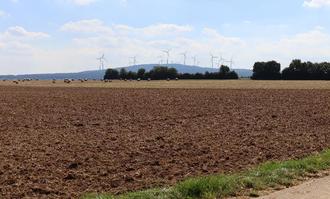 Fotomontage: So könnte der Windpark vom Menhir von Ober-Mörlen aus aussehen.