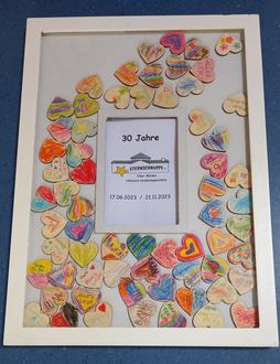 Jubiläums-Bilderrahmen mit vielen lieben wünschen der Gästen des Sommerfestes.