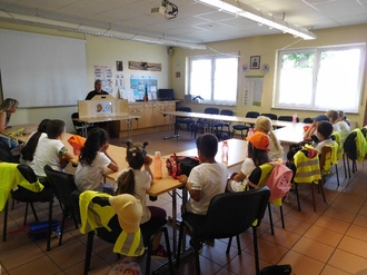 Iris und Thomas hatten für jeden Sterntaler die morgens erarbeitet Geschichte von Leonie und Lenni sowie einen „leuchtenden Anhänger“, einen Sticker und Stundenpläne mit den Feuerwehrautos der Gemeinde Ober-Mörlen. Da die Zeit so schnell vergangen ist und die Sterntaler schnell in die Kita mussten, wurden schnell Kindersitze geholt und die Kinder wurden im Feuerwehr-Einsatzfahrzeug in die Kita gefahren. Hier wurden die „Großen der Kita“ von den anderen Kindern in der Kita, die rasch an den Zaun gelaufen kamen, ganz herzlich empfangen.