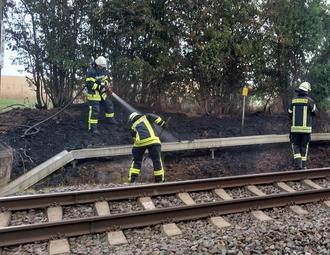 Am Samstag, den 08.07.2023 gegen 09:57 Uhr wurden die Einsatzkräfte zu einem Böschungsbrand an der Bahnstrecke alarmiert. Vor Ort eingetroffen stellten die Einsatzkräfte fest, dass die Böschung direkt an der Bahnschiene brannte. Um die Böschung komplette und ohne Gefahr für Einsatzkräfte löschen zu können, musste der Bahnverkehr auf der Strecke kurzfristig eingestellt werden.