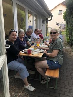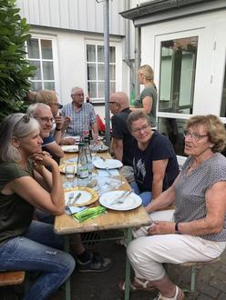 Am Grill stand wieder einmal Roland Leutner bereit und versorgte die hungrigen Münder mit leckerem Grillgut, die anderen hatten reichlich selbstgemachte Salate und Desserts mitgebracht. Ort des Geschehens war das evangelische Gemeindehaus, das Pfarrerin Immanuel dankenswerterweise zur Verfügung gestellt hatte. Bei angenehmen Temperaturen saßen die Aktiven des Vereins - und zu deren Freude waren auch einige passive Mitglieder der Einladung gefolgt - gemütlich beieinander und verbrachten einen sehr angenehmen und geselligen Abend.