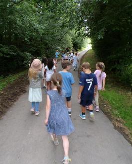 Nach dem Essen gab es eine Überraschung für die Schulanfänger. Gemeinsam mit dem päd. Fachkräften ging es durch das Ober-Mörler Feld, denn „Omcron“ der Freund von Wuppi benötigte Hilfe.