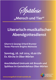 | 18:00 Uhr | Literarisch-musikalischer Abendgottesdienst in Ober-Mörlen |
