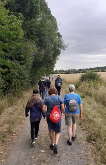 Die Vogelfreunde wandern entlang der Usa und Felder.