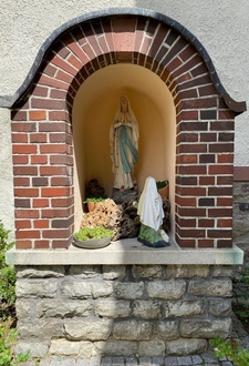 Solche Darstellungen waren früher in vielen katholischen Gemeinden verbreitet und galten als Ort stiller Andacht und Gebet. Besonders zur Erstkommunion wurden dort gerne Erinnerungsfotos aufgenommen, häufig mit der Grotte als Hintergrund. Zu dieser Zeit wurden auch Marienandachten mit kleinen Lichterprozessionen von den Gläubigen zur Grotte unternommen. Ihr Standort am rechten Eingang des Kirchhofgartens wurde bewusst gewählt und soll zudem eine einkehrende und hoffnungserweckende Wirkung verbreiten.