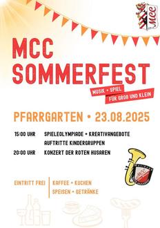 Wie auch in den zurückliegenden Jahren laden wir als MCC Sie und Euch an einem hoffentlich sonnigen 23.08.2025 nach dem Ende der Ferien herzlichst zu unserem MCC-Sommerfest in den Pfarrgarten ein.