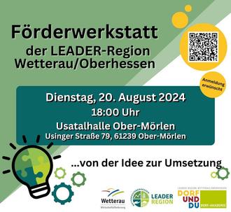Die Wirtschaftsförderung Wetterau lädt zur Förderwerkstatt der LEADER-Region Wetterau/Oberhessen ein. Die Veranstaltung findet am