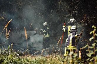Durch Radfahrer wurde das Feuer entdeckt. Diese führten auch die Einsatzkräfte zielgerichtet zur Einsatzstelle.