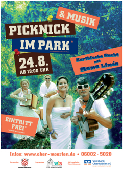 Veranstalter vom „Picknick mit Musik im Park“ ist die Gemeinde Ober-Mörlen, die Organisation liegt in Händen der Initiative „WIR für unser Dorf“, die Veranstaltung wird unterstützt von der Volksbank Ober-Mörlen. Die Musik spielt ab 20 Uhr. Wer sich ab 19 Uhr gemütlich auf der Wiese einrichten möchte, kommt genau richtig, um am besonderen Ort mit Familie, Freunden, Kollegen oder Vereinskameraden zu genießen. Der Eintritt ist frei, Spenden zur Deckung der Kosten sind willkommen. Bei Regen fällt die Veranstaltung aus. Im Zweifel kann man sich am Veranstaltungstag unter der „Wetter-Hotline“ 0160-2435992 erkundigen.
