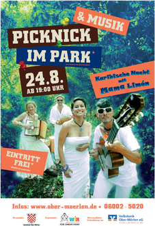 Diesen Samstag! Endlich! Und das Wetter spielt auch mit! Jedenfalls sagen das gerade alle Wetterfrösche. Im illuminierten Schlosspark steigt die erste Karibische Nacht in Ober-Mörlen. Die Profi-Band „Mama Limón“ taucht ein in Salsa und Reggae, Rumba und Bossa Nova. Mal energiegeladen mit viel Rhythmus, mal ganz sanft und immer absolut tanzbar bringen die vier Musiker mit ihren Latin-Grooves das Gefühl von Sommer, Sonne, Strand und Party mit. Beste Gelegenheit also, sich zum Ausklang der Sommerferien unterm Sternenzelt zu treffen, gemeinsam zu feiern und zu genießen.