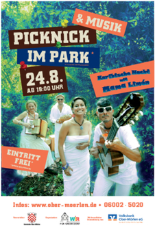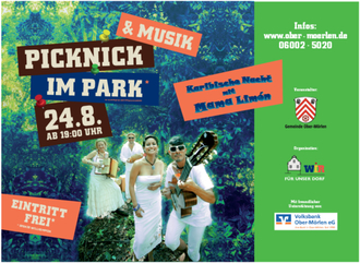 Zum „Picknick im Park“ bringt jeder sein eigenes Picknick mit. Der Fantasie sind keine Grenzen gesetzt. Ob Picknickdecke oder Tischlein deck dich mit Solarlichtern, alles ist denkbar. Für die magische Beleuchtung rundum sorgt Norbert Mohr mit seinem Team. Die Musik spielt ab 20 Uhr. Wer sich ab 19 Uhr gemütlich auf der Wiese einrichten möchte, kommt genau richtig, um am besonderen Ort mit Familie, Freunden, Kollegen oder Vereinskameraden zu genießen. Veranstalter vom „Picknick im Park“ ist die Gemeinde, die Initiative „Wir für unser Dorf“ organisiert den Abend.