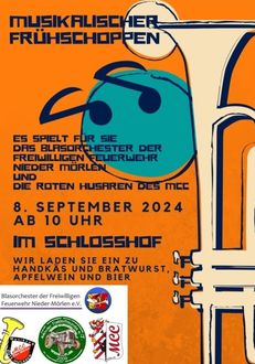 Gemeinsam mit dem Blasorchester der Freiwilligen Feuerwehr Nieder-Mörlen erwartet Sie am 08.09.2024 ab 10 Uhr im Schlosshof allerhand Musik der zwei Musikzüge/Orchester.