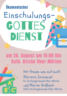 | 15:00 Uhr | Ökumenischer Einschulungsgottesdienst in der katholischen Kirche in Ober-Mörlen |