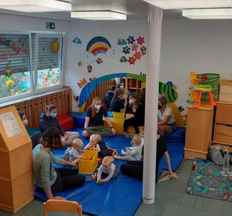 Jeden Freitag Vormittag gibt´s ein ordentliches Gewusel, wenn sich die allerkleinsten Mitglieder der Zwergenstube zu ihren Krabbelkursen treffen. Das sind Babys im Alter von 4 Monaten bis zu einem Jahr im Beisein einer Begleitung. Da wird gemeinsam gesungen, es werden Kniereiterspiele ausprobiert, ab und zu etwas gebastelt und die Kleinen bauen ihre ersten sozialen Kontakte mit Gleichaltrigen auf. Mutig erkunden die kleinen „Krabbler“ nach und nach den Raum und erforschen die Spielsachen. Da wird gerobbt, gekrabbelt und da werden auch schon die ersten Schritte ausprobiert. Die Eltern genießen es in der Zeit, sich mit anderen Eltern auszutauschen. Da gibt es viele gute Gespräche, natürlich rund ums Kind, aber auch über Dies und Das. Bei gutem Wetter findet der Kurs draußen statt, so dass dann sogar unter freiem Himmel auf Decken geforscht und gesungen und gelacht wird.
