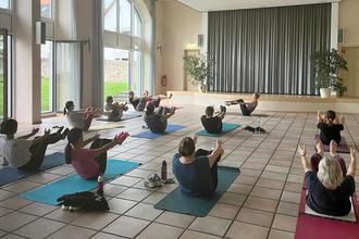 „Yoga im Grünen“ traf sich in der verregneten vergangenen Woche mit Yogalehrerin Elisabeth Heil im Bonifatiussaal zu einer starken Stunde für Körper und Geist