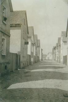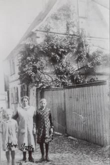Die Pfarrgasse mit den Geschwistern Hofmann links und rechts und einer Freundin in der Mitte.