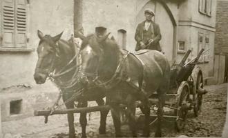 Blick in die Neugasse mit Karl Julius Heil und seinem Wagengespann (Bertlams Karl)