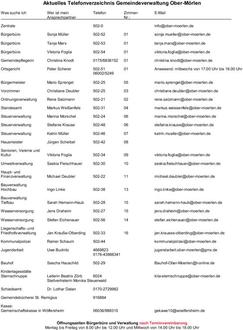Aktuelles Telefonverzeichnis Gemeindeverwaltung Ober-Mörlen