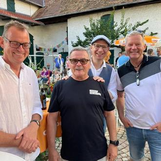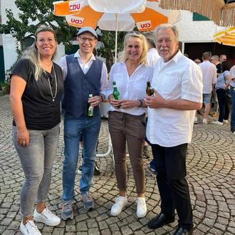 "Mit Bier, Wurscht und Weck(ler)" hieß es vor einigen Tagen beim Sommerfest der CDU-Ober-Mörlen. In dem tollen Ambiente des Innenhofs der Familie Fuß-König feierten CDU Mitglieder, Freunde und Bekannte in der Schulstraße bei herrlichem Sonnenschein mit Landrat Jan Weckler und CDU Landtagskandidatin Annette Wetekam. Erfreut zeigte sich CDU Vorsitzender Gottlieb Burk bei seiner Begrüßung über die zahlreich erschienen Gäste und vor allem auch über den Besuch der Vertretungen von SPD und FWG sowie von einigen Vereinen. Jan Weckler und Annette Wetekam zeigten sich in ihren Grußworten voll des Lobes für die Organisation des Festes und bedankten sich für die Unterstützung ihres Wahlkampfes. Gottlieb Burk wünschte beiden für die bevorstehenden Wochen bis zur Wahl am 8. Oktober noch viel Kraft und einen erfolgreichen Abschluss. Bei leckeren Speisen und kalten Getränken erfreute man sich bis in den Abend noch an den guten Gesprächen.