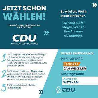 die CDU Ober-Mörlen möchte Sie mit beigefügtem Bild auf die Möglichkeit der Briefwahl hinweisen.