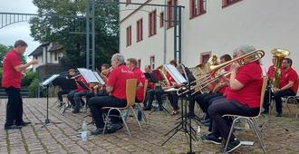 Ober-Mörlen (Ham) Kurz vor Ende des Sommers fanden sich am Sonntag, den 08.09.2024 vormittags drei Gruppen im Ober-Mörler Schlosshof zu einem gemeinsamen Frühschoppen zusammen: Die Roten Husaren und weitere Aktive des MCC, das Blasorchester der Freiwilligen Feuerwehr Nieder-Mörlen und die Traktorfreunde Ober-Mörlen.