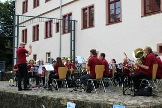 Im Beisein der Bürgermeisterin und Schlossherrin Kristina Paulenz wurde dem Publikum ein abwechslungsreiches musikalisches Unterhaltungsprogramm geboten, welches von Italo Pop über Märsche bis hin zu traditionell böhmischer Blasmusik und Polkas reichte und gute Laune verbreitete.