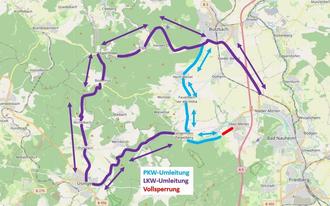 Lastkraftwagen müssen eine größere Ausweichroute über u.a. Weiperfelden und Usingen befahren.