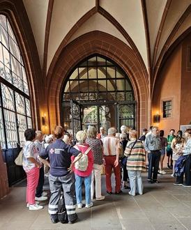 Zum Abschluss führte der Weg durch den im Jahr 2018 rekonstruierten Hof zum Rebstock bis zur Rückseite der Paulskirche. Nach rund zwei Stunden endete die spannende Führung, die von den Teilnehmerinnen und Teilnehmern mit großem Dank für die anschaulichen und kenntnisreichen Erklärungen der Stadtführer bedacht wurde.