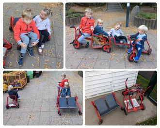 An den stabilen Fahrzeugen mit dem roten Stahlrahmen haben hoffentlich mehrere Generationen von Kita-Kindern ihre Freude.