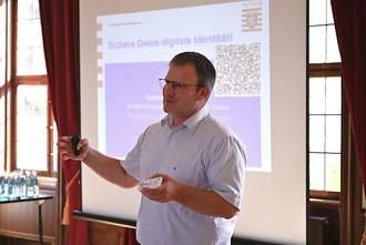 Nach dem Motto „Sichere deine digitale Identität“, fragte KHK Kaiser die Teilnehmer wie viele Accounts sie denn durchschnittlich hätten.