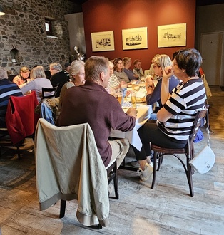 Der Abendspaziergang vom Landfrauenverein endete diesmal im Schlossgeist. In tollem Ambiente konnten sich die vielen Teilnehmer zum Abschluss mit Weißwurst, Käse und Brezeln stärken.
