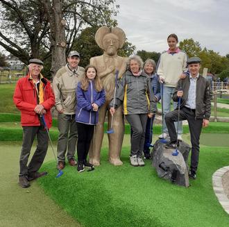 Nachdem man sich zuletzt in Heimbuchenthal bei Mespelbrunn so köstlich beim Abenteuer-Minigolf amüsiert hatte und die Truppe sich (Mini-)Golftauglich als würdig erwies, organisierte man promt den nächsten Trip zum Abschlagpunkt. Am Sonntag gings auf die neue Wetterauer-Abenteuer-Minigolfanlage am Wölfersheimer See. An 18 Löchern mit Bahnmotiven wie sie origineller unsere Region nicht hätten präsentieren können, testeten die Aktiven nebst Chorleiter ihre zuvor erprobten Schlagtechniken. Fazit, man wird die neue Anlage ein weiteres Mal besuchen kommen. Den gemeinsamen Abschluss erlebte man im "Mörlener Hof" in Nieder-Mörlen.