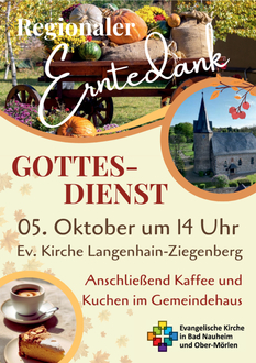 | 14:00 Uhr | Regionaler Erntedankgottesdienst in Langenhain-Ziegenberg |