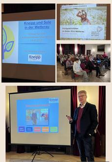 Im vollbesetzten Rittersaal referierte Dr. Lutz Ehnert über die Kneipp Kultur in der Wetterau. Dr. Ehnert ist u. a. im Vorstand des Kneippvereins Bad Nauheim – Friedberg – Bad Salzhausen e. V. und in einem kurzweiligen Vortrag bringt er den Besuchern die Geschichte von Sebastian Kneipp, die Bedeutung der fünf Elemente Wasser, Bewegung, Lebensordnung, Heilpflanzen und Ernährung und deren Umsetzung im Alltag nahe. Auch über die Zukunft von Bad Nauheim als Kneippkurort und die Bemühungen, die gesunde Kneipp Lebensweise allen Menschen von jung bis alt näherzubringen, verdeutlicht er in seinem Beitrag.