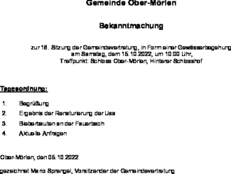 Bekanntmachung zur 16. Sitzung der Gemeindevertretung, in Form einer Gewässerbegehung