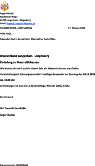 Veranstaltungsort Schulungsraum der Freiwilligen Feuerwehr am Samstag den 18.11.2023 ab 19.00 Uhr
