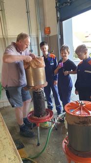 Im Anschluss an das Sammeln begangen die Kinder und Jugendlichen mit vollem Eifer das Pressen der Äpfel. Den Apfelsaft konnten die Kinder und Jugendlichen direkt verzehren.