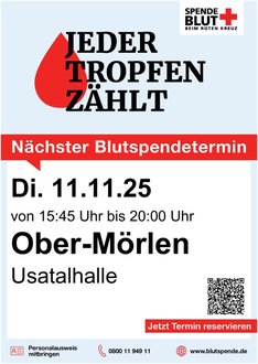 Gesucht: Menschen, die uns als DRK Ortsverein Ober-Mörlen e.V. bei der Durchführung von Blutspendeterminen helfen. Fachliche Voraussetzungen sind nicht erforderlich. Infos hierzu unter Tel. 7898 Herr Dietmar Wittmann.