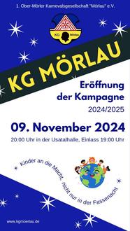 Am Samstag, dem 09.11.2024, beginnt für uns die neue närrische Kampagne 2024/25. Die Narrenschar startet um 19.00 Uhr an der Fastnachtsplastik mit einem Umzug durch Mörlaus Gassen in die Usatalhalle. Ab 20 Uhr eröffnet die Fastnacht den hochoffiziellen Teil des Abends mit ihrer Wiedererweckung. Im Mittelpunkt des Abends steht natürlich unser Mörlauer Prinzenpaar. Verschiedene Tänze, Darbietungen und Ehrungen für besondere Leistungen und langjährige Mitgliedschaft erweitern das Programm, für gute Musik sorgt DJ Rudi.